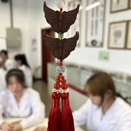 每一块香牌经过同学们的调配、和泥、醒发、制形、阴干、打磨、穿穗等七个步骤,从各个方面保证香牌的精致的内涵和品质。也因此与香囊相较而言,香牌的留香和扩香时间更为长久。制作香牌是一种传承,也是与传统文化的一种交流。传统的文化需要和现代人的审美、生活融合到一起,才能更好的弘扬、发展。