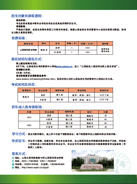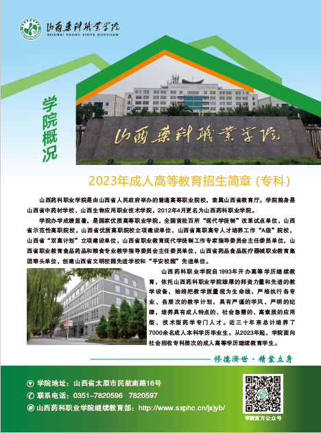 山西药科职业学院2023年成人高等教育招生简章(专科)