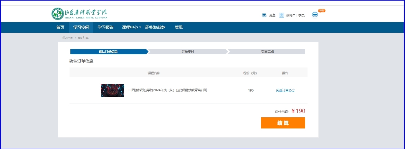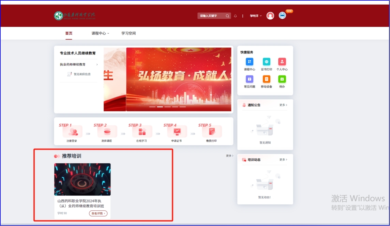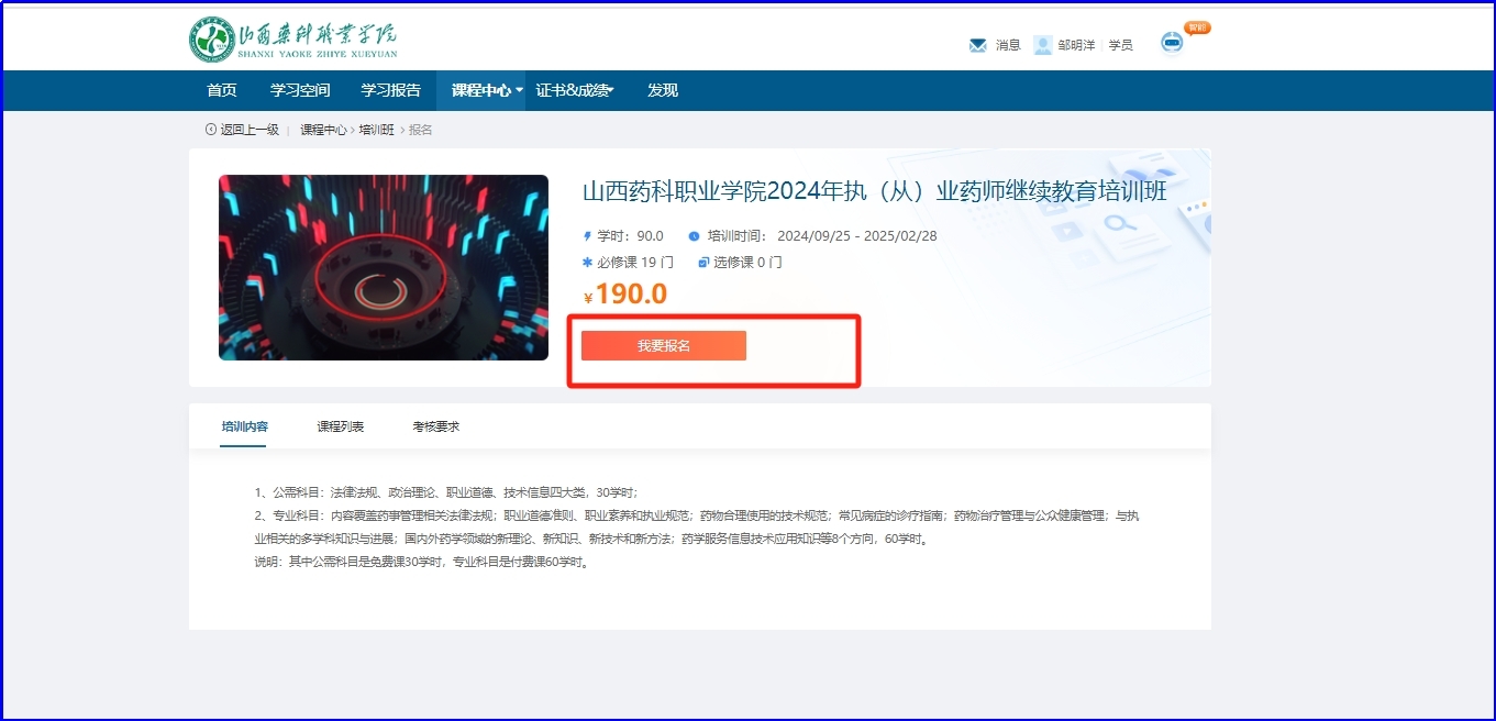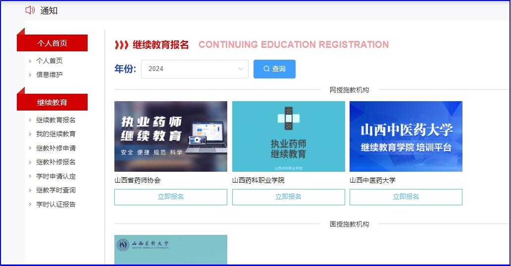 (五)点击继续教育报名按钮,点击山西药科职业学院立即报名跳转到山西药科职业学院学习平台。