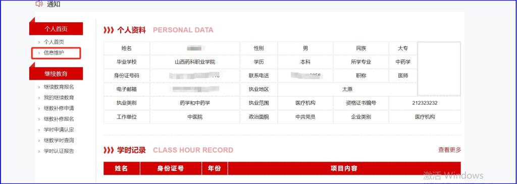 (四)点击信息维护补全个人信息