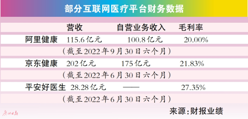 互联网平台“进军”医药电商,目的是将流量变现。不管是阿里、京东等传统电商,还是美团、饿了么等即时零售,到抖音等直播平台,都瞄准互联网健康医疗的“风口”。在医药电商行业,自营业务是平台营收的重要部分。据阿里健康截至2022年9月30日六个月中期业绩显示,报告期内,集团总收入为115.6亿元,医药自营业务收入达100.82亿元,同比增长24.2%,其中处方药业务收入增长46.2%。京东健康截至2022年6月30日六个月的中期业绩则披露,报告期内,其自营业务收入达到175亿元,同比增长48.6%。财报中表示,京东健康总收入的增长主要是得益于销售医药和健康产品所得商品收入的增长。而O2O医药电商的美团买药,也在布局自营业务。去年5月,据天眼查信息显示,天津美团大药房有限公司成立,注册资本1000万元人民币,经营范围含药品零售,第三类医疗器械经营等。