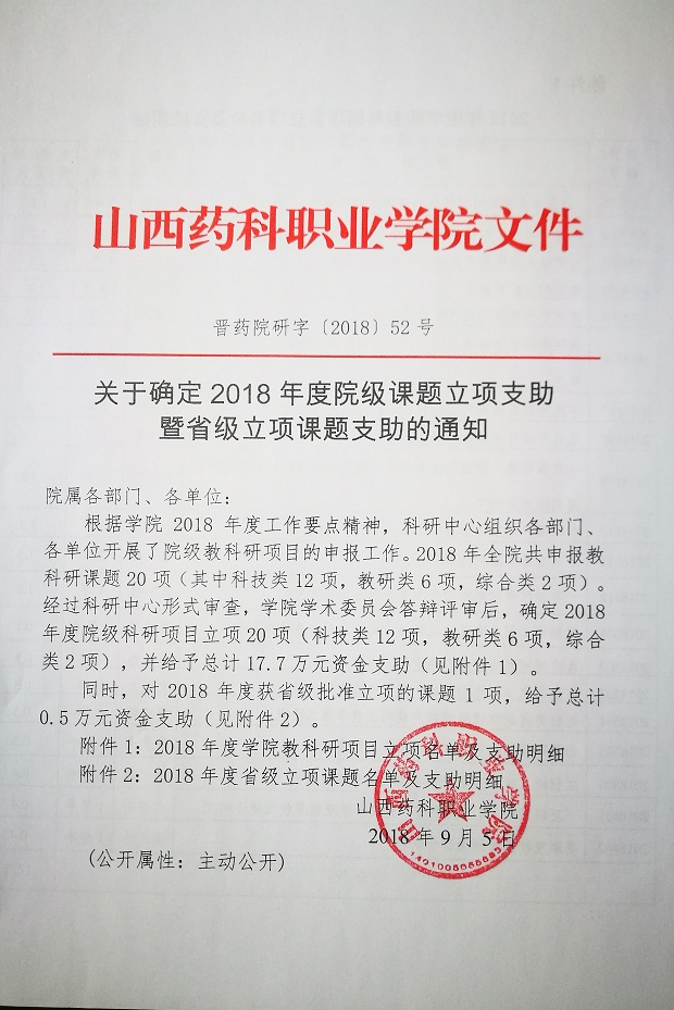 关于确定2018年度院级课题立项支助暨省级立项课题支助的通知