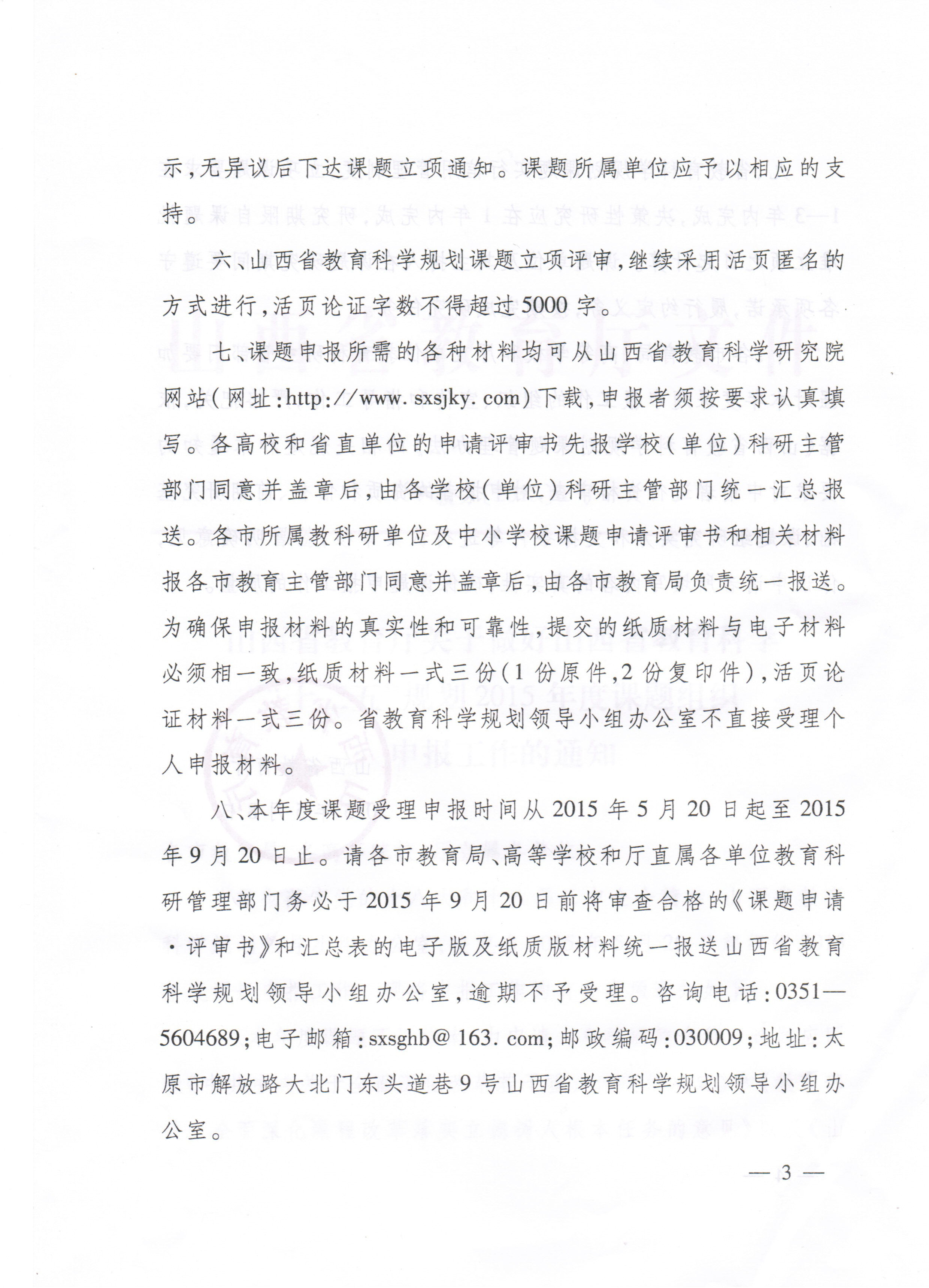 关于山西省教育科学“十二五”规划2015年度课题申报工作的通知