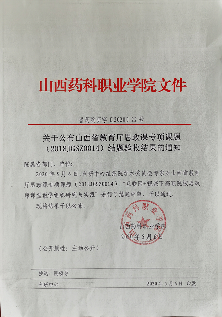关于公布山西省教育厅思政专项课题(2018JGSZ0014)结题验收结果的通知
