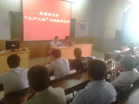 教辅党支部书记张虹同志围绕“三严三实”专题教育的主题,给大家讲党课。张虹同志阐述了“三严三实” 提出的背景和发展脉络、“三严三实”的内涵和重大意义、“三严三实”的时代内涵。联系我省发生腐败问题的主要原因、联系学院的政治生态实际、联系学院特别是本支部的党员、干部的思想、工作、生活和作风实际,分析了在党员干部中存在的“不严不实”的典型问题和危害,强调“三严三实”是新时期的新标准和新要求,大家要认真践行“三严三实”,不断改进工作作风,要加强政治纪律,提高忠诚意识;加强组织纪律,提高执行意识;加强工作纪律,提高担当意识;加强廉政纪律,提高干净意识;加强群众纪律,提高服务意识。全体教职员工,特别是党员干部要立足本职岗位,将习近平系列讲话精神和专题教育要求贯彻到管理服务的全过程,树立勤政、务实、廉洁、高效的良好形象,为学院的科学发展做出应有的贡献。