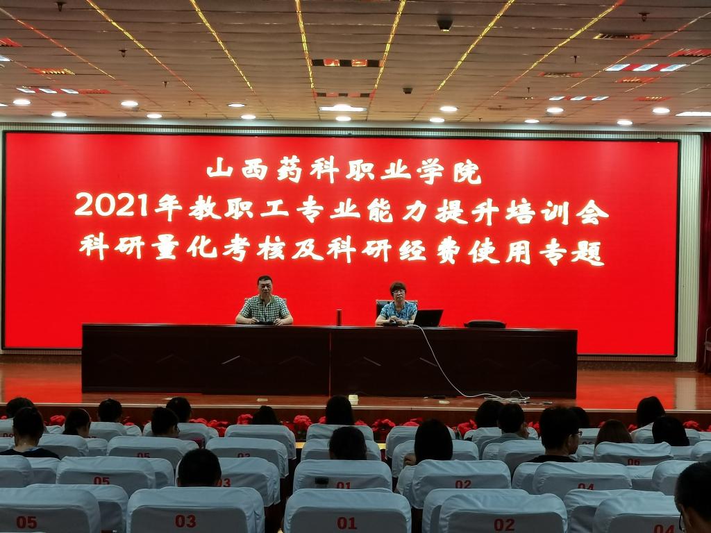 2021年7月7日上午,依托学院干部能力提升培训会,科研中心负责新修订的《山西药科职业学院科研工作量化考核实施细则》、《山西药科职业学院科研经费和科技活动经费管理办法》、《山西药科职业学院科研工作量化考核管理办法》等科研管理制度进行解读。并邀请“山西药科职业学院科研管理系统”软件开发负责人王祎、科研采购管理平台经理张志强分别就科研管理系统使用方法、科研采购管理平台的应用“三个方面进行重点介绍。