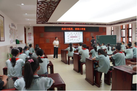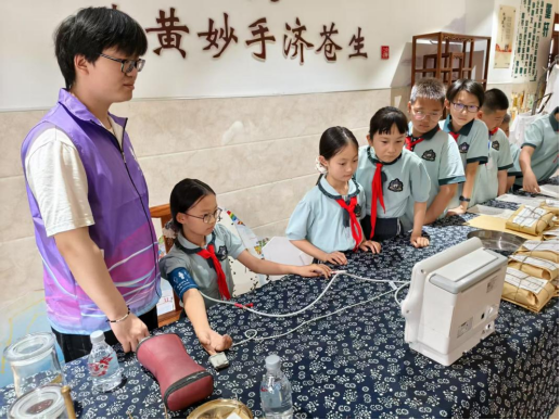 北营小学的研学活动精彩不断。学院专业教师围绕“药茶养生”和“药膳搭配”展开深入讲解,将古老的中医药智慧与现代生活相结合,让孩子们了解到中医药在日常生活中的广泛应用。随后,教师带领孩子们制作“中国结”。在穿针引线的过程中,孩子们不仅锻炼了动手能力,更领略到古方今用的智慧与传统手工艺的独特魅力,进一步增强了对传统文化的认同感和自豪感。