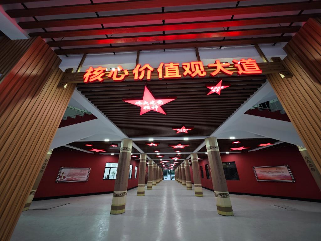 山西药科职业学院社会主义核心价值观大道于第40个教师节来临之际全面建成并正式启用。大道有效利用学生食堂长廊通道物理空间,以红色为主基调,以满天红星和20根形似中国古代折叠简牍圆形立柱为主体架构,以社会主义核心价值观、“四个自信”、“习语润心”、中国共产党人精神谱系等为主要内容,并从中华文化和时代精神两个维度对大道内容作出全面阐释,是集文化育人实践场所、大学生爱国主义教育基地、行走的思政课堂于一体的综合性育人载体。