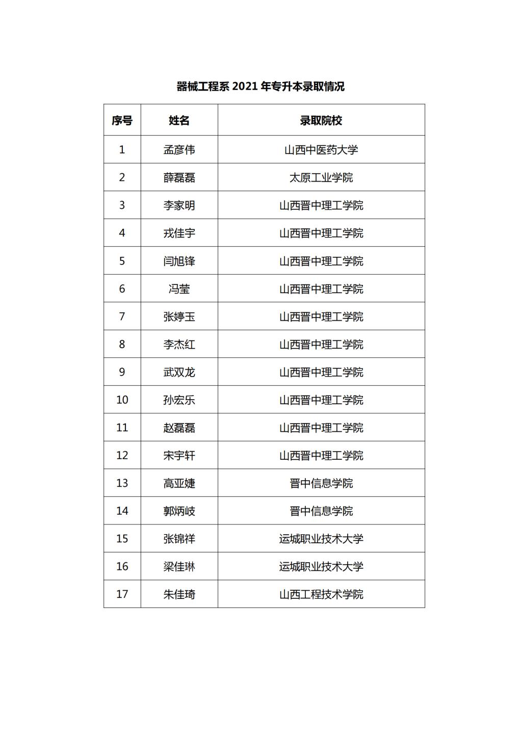 2022年,器械工程系17名学生进入本科院校继续学习。器械工程系向实现升学梦想的2022届毕业生表示祝贺!