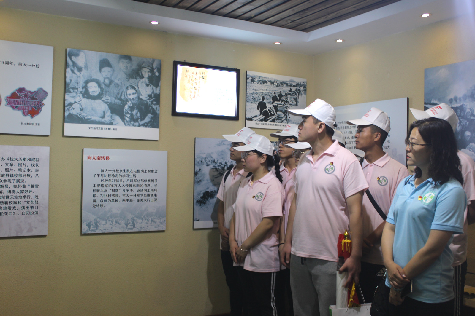 实践团一行首先来到岗上村抗大一分校旧址,接受爱国主义教育,通过讲解员精彩介绍,大家追寻革命前辈伟大而艰辛的历史足迹,参观了抗大一分校主展厅、东厢房以及女生队宿舍等旧址,了解到了“抗大一分校”的艰辛办学史和抗大学员为抗战胜利抛头颅、洒热血的奋斗史。队员们用心聆听每一个故事,细致观看每一张图片,每一件革命实物,大家都被革命前辈殚精竭虑、前仆后继的崇高精神和巨大勇气深深感染着。