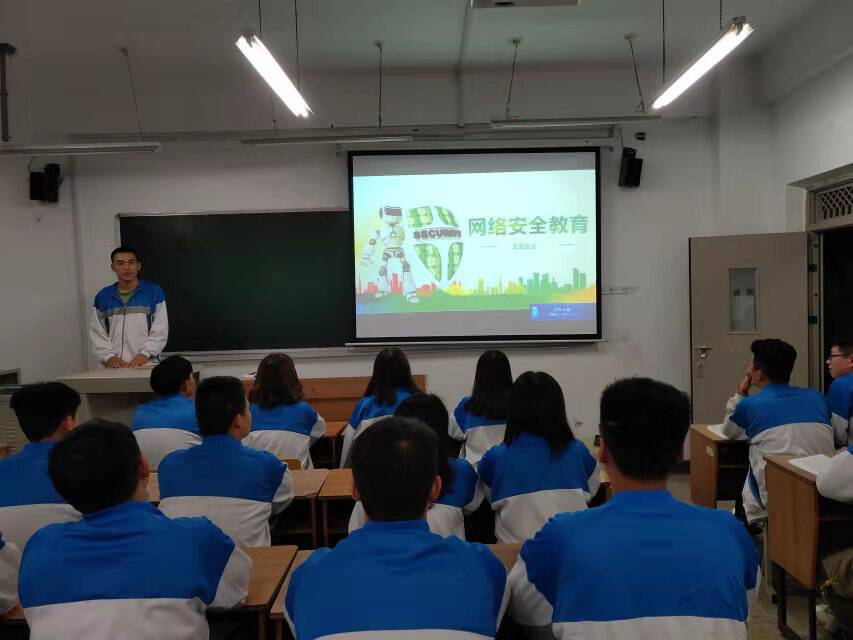 班会分三个环节开展,第一环节案例讲解,运用通俗易懂的语言、形象生动的图片、典型深刻的案例,介绍了新型网络欺诈、网络攻击以及日常工作、生活中存在的网络安全风险,让同学们对网络安全相关法律法规、管理办法及防范技术有了基本的了解。第二环节,观看国家网络安全宣传周微视频,通过观看视频,学生们加强了对网络安全的认识,提高了网络安全防范意识。没有网络安全就没有国家安全,网络空间已经成为我国的“第五疆域”,我们是网络空间的受益者,也应该是网络安全的监督员,我们必须树立正确的网络安全观。最后,同学们集体宣读了《青少年文明安全上网》倡议书。