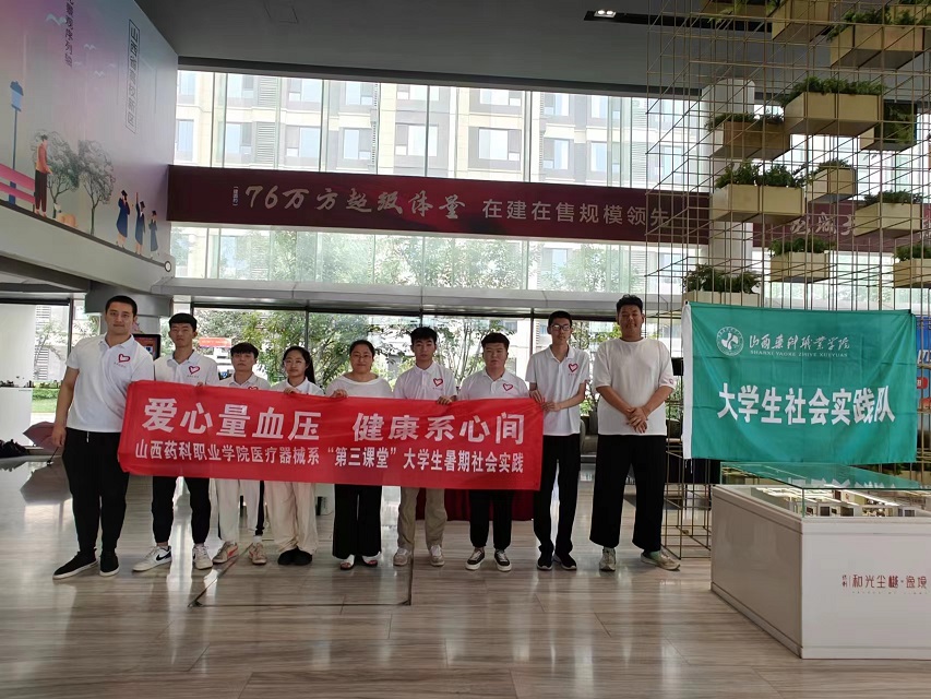 7月7日,山西药科职业学院医疗器械系暑期“第三课堂”建发致新社会实践队深入社区开展“爱心量血压,健康系心间”志愿服务活动。