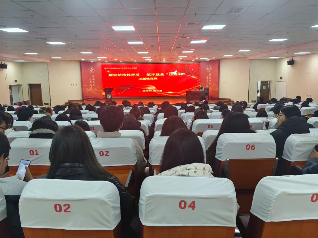 12月17日,医疗器械系党总支开展“锚定结构性就业矛盾 筑牢就业‘压舱石’”主题微党课,系内全体师生齐聚学习,党课由党总支书记柴红萍主讲。