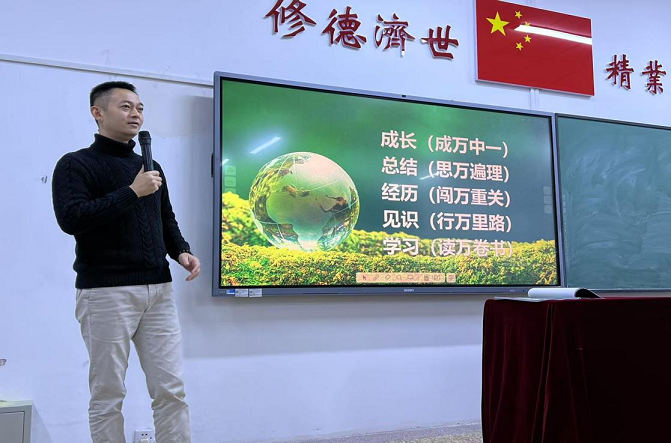 熊伟皓老师结合自身成长经历,分享了自己多年的奋斗历程与心理历程,用一个个小故事告诉同学们所有的成功都离不开坚守初心、不忘梦想、持续努力。熊老师激情澎湃的演讲、生动有趣的故事,博得了同学们阵阵热烈的掌声,让大家受益匪浅。