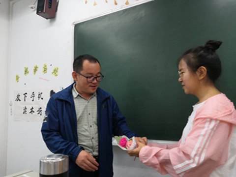 课堂上,同学们全体起立,表达问候,一句“老师,您辛苦了”道出学子对教师的无限感恩,各个班级纷纷拿出提前制作好的花束,走上讲台献给老师,卡片上几行话语,承载着莘莘学子对老师们的无尽祝福。还有些同学走进老师的办公室,献上鲜花,送上祝福。老师们对于今天特别而美丽的祝福都感到惊喜和意外,他们接受鲜花时会心的微笑。
