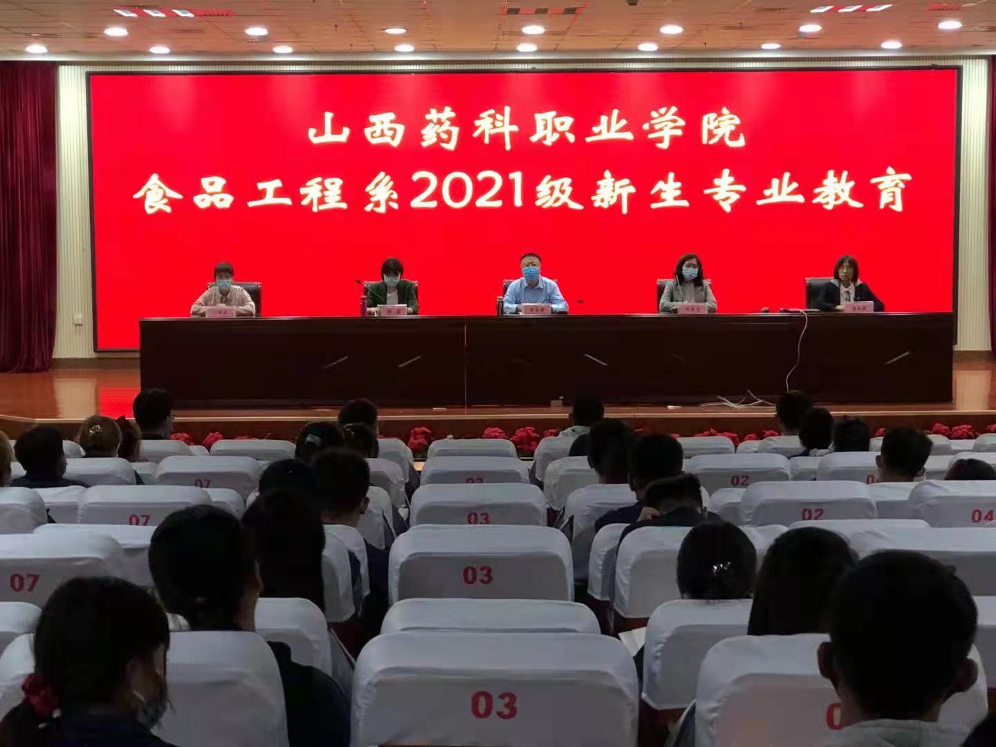立足新起点,开启新征程。为进一步深化立德树人根本任务,帮助2021级新生尽快融入大学校园,坚定理想信念、树立远大理想、增强爱国情怀,了解食品行业领域的现状和职业岗位技能的要求,2021年9月27日下午,食品工程系组织召开2021级新生专业教育大会。食品工程系党总支副书记、副主任郝日晋、教研室主任、新生辅导员和2021级全体新生参加大会。大会由食品工程系办公室副主任杨兆艳主持。