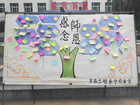 九月,金秋送爽,硕果累累。为促进师生之间的沟通交流,增进师生感情,加强学生感恩教育,营造尊师重教的校园文化,2018年9月10日,我系分团委社会实践部在爱我药院前开展了“感念师恩,句句暖心”的主题活动。