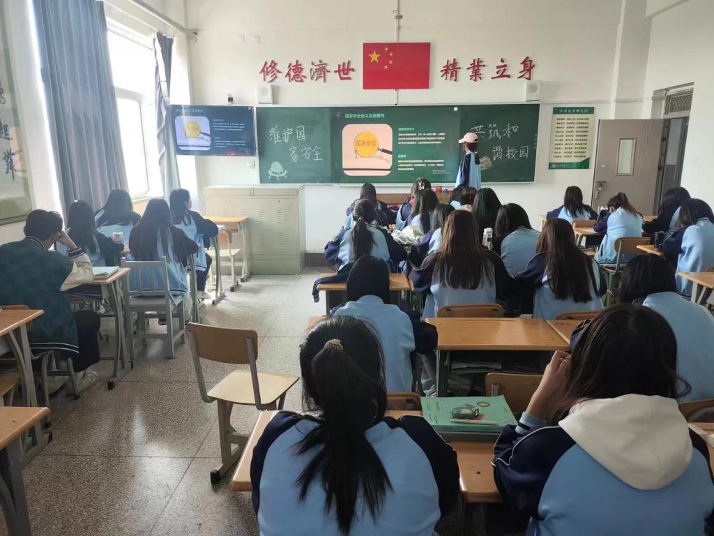 各班团支书利用PPT向同学们详细地介绍了国家安全教育的重要性,加深了同学们对国家安全的认识和理解,随后组织同学们就“当代青年学生如何践行总体国家安全观”展开相关讨论,进一步增强了同学们维护国家安全的责任感和使命感。