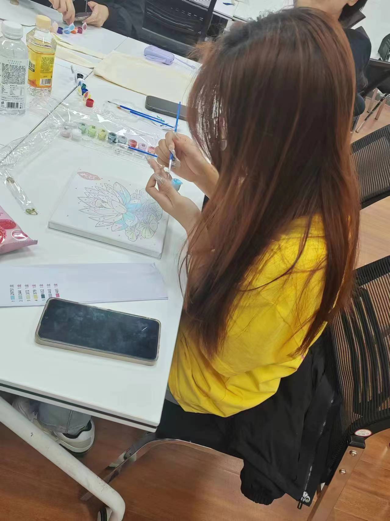 活动中,活动负责人首先对开展校园廉洁文化建设及廉洁自律教育的重要性进行讲解,向大家介绍了活动流程、手工内容和具体步骤,并分发手工作品的材料。手工制作环节中,同学们在木框和扇子上涂上荷花、竹子等和廉洁相关的图案,并书写自己喜欢的与廉洁有关的诗词、字句等。期间同学们互帮互助,氛围轻松融洽,大家也都完成了属于自己的作品。同学们对廉洁文化也有了更深刻的认识。最后,在大家对廉洁文化的探讨和手工制作的经验分享中结束了本次活动。