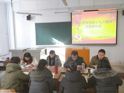 2017年12月8日上午,食品工程系党总支在东教学楼101教室组织开展学习贯彻党的十九大精神交流研讨会,会议由系总支书记郁敏主持,系全体党员参会。