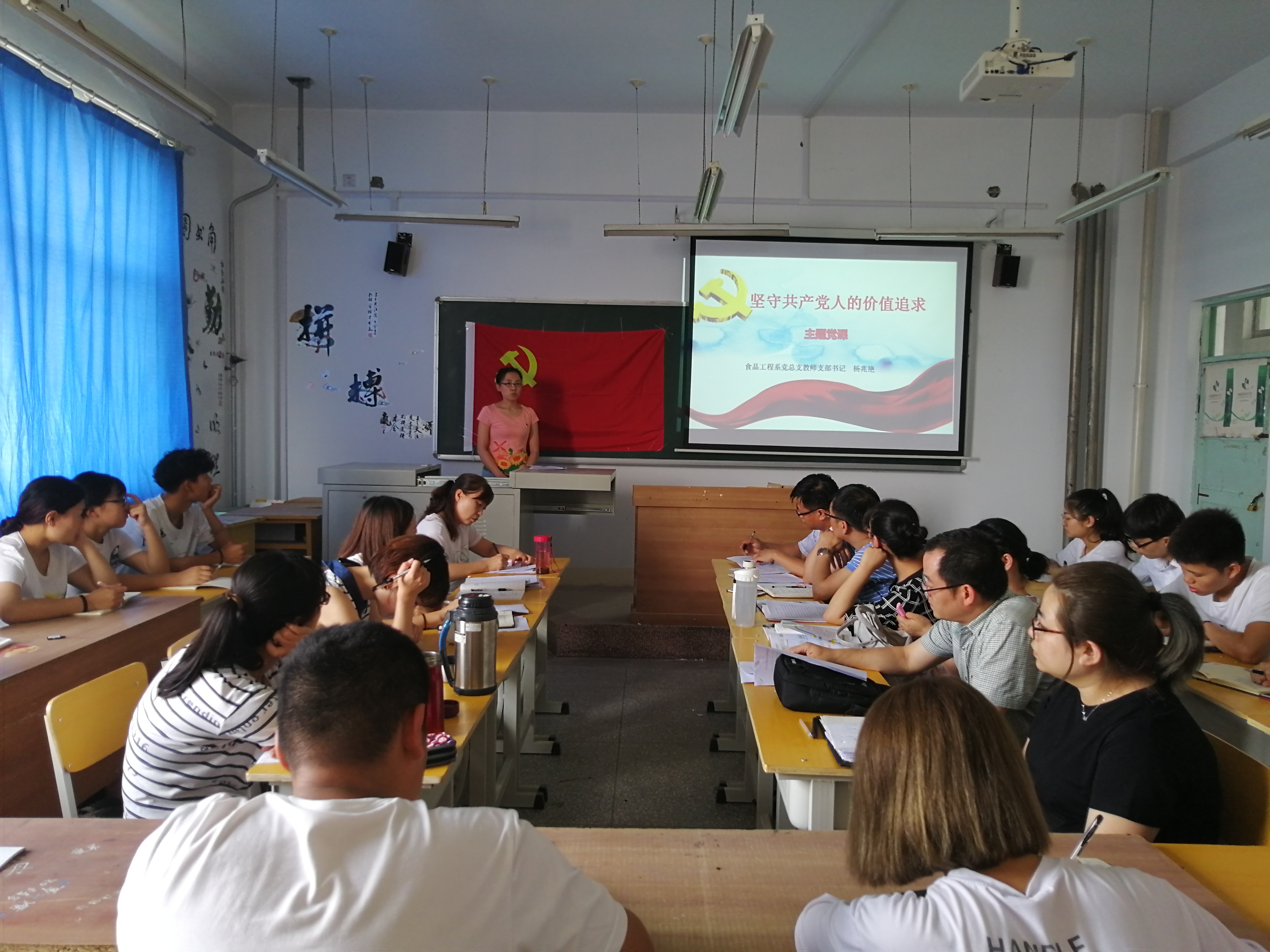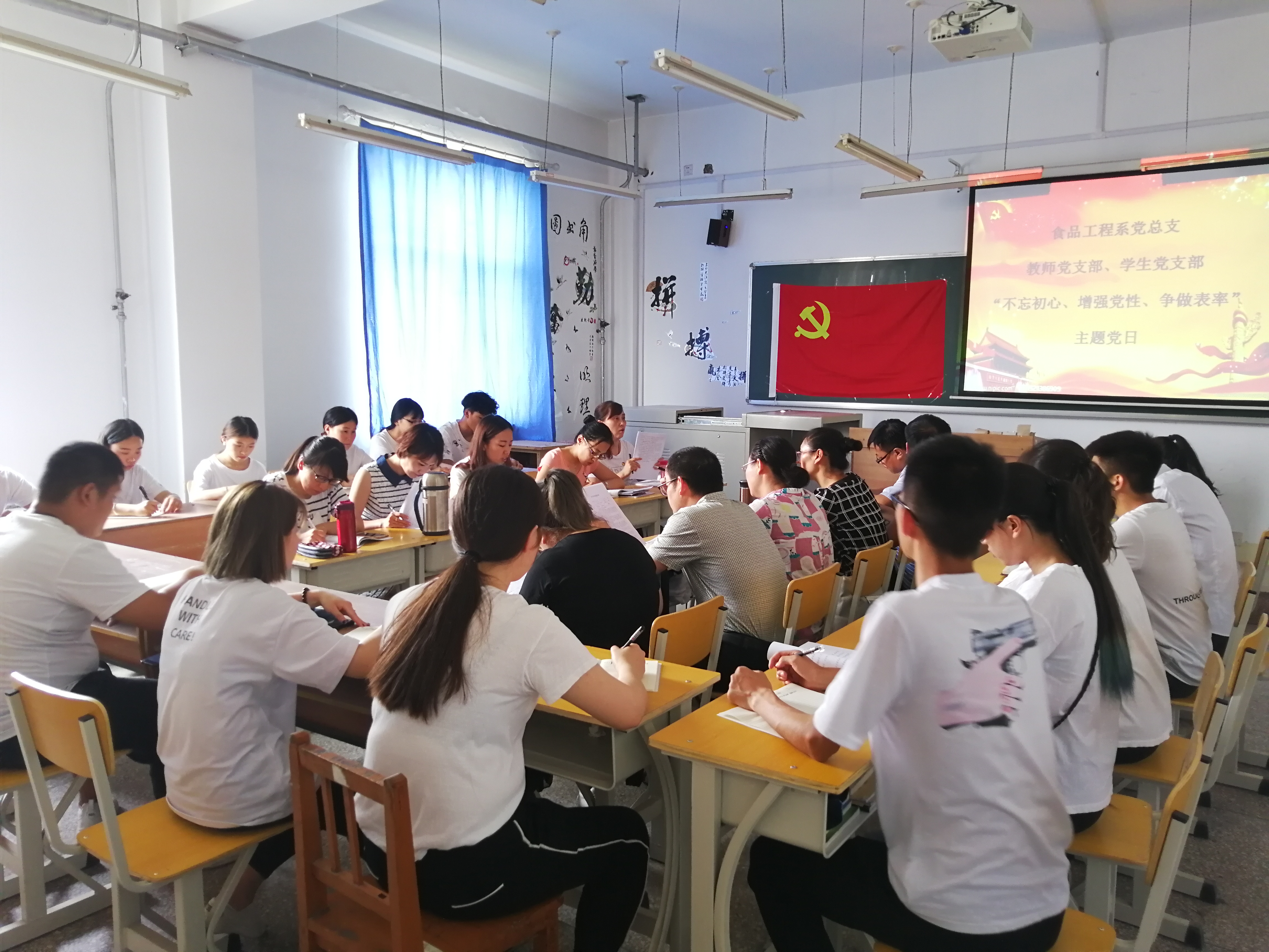 为隆重庆祝中国共产党成立97周年,继承和发扬党的光荣传统和优良作风,2018年6月20日下午,食品工程系党总支教师党支部、学生党支部在东教学楼608教室组织开展 “不忘初心、增强党性、争做表率”主题党日活动,教师支部全体党员、学生支部全体党员、发展对象、入党积极分子参加此次活动。