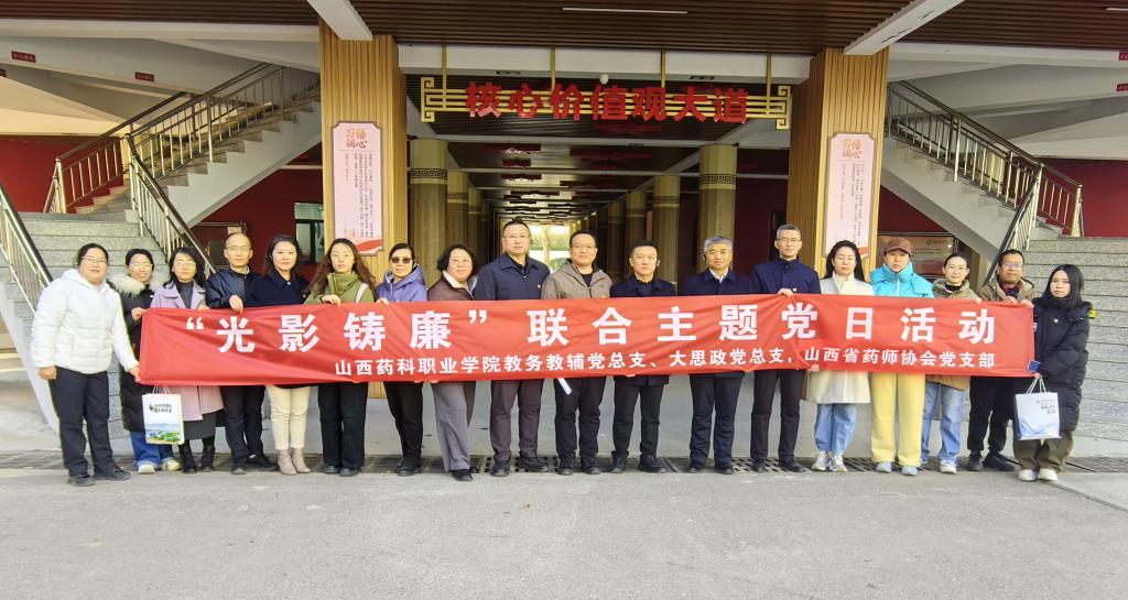 2025年11月24日下午,教务教辅党总支、大思政党总支联合山西省药师协会党支部共同开展主题党日活动。马克思主义学院教师贾晋霞在核心价值观大道为党员们讲授了一堂精彩的专题党课。全体党员怀着崇敬之心,在红色文化浸润中感悟初心使命,汲取奋进力量。