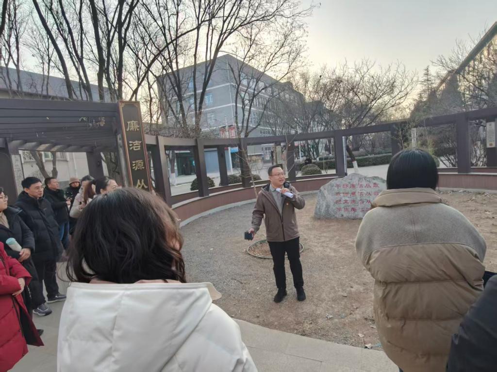 2026年1月28日下午,冬日暖阳洒满校园,山西省2025年度职业院校教师素质提高计划“双师型教师专题研修班”的30余名教师,走进山西药科职业学院廉园,开启了一场别开生面的沉浸式思政现场教学。马克思主义学院院长任俊峰以园为课、以景为媒,带领参训教师感悟廉洁文化与中医药文化交融的独特魅力,为大家上了一堂生动深刻的廉洁教育课。
