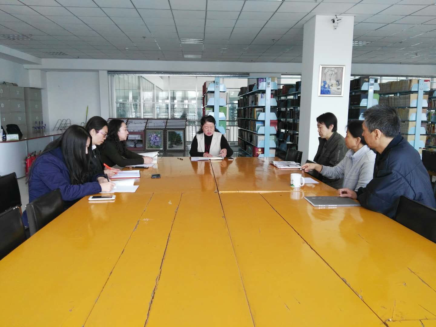 4月11日,图书馆召开工作例会,全体人员参加。馆长吴虹传达了学院4月份工作例会精神,重点安排部署了“大讨论”近期的学习讨论事项,以及开展学院第六届“读书月”活动的相关工作安排。