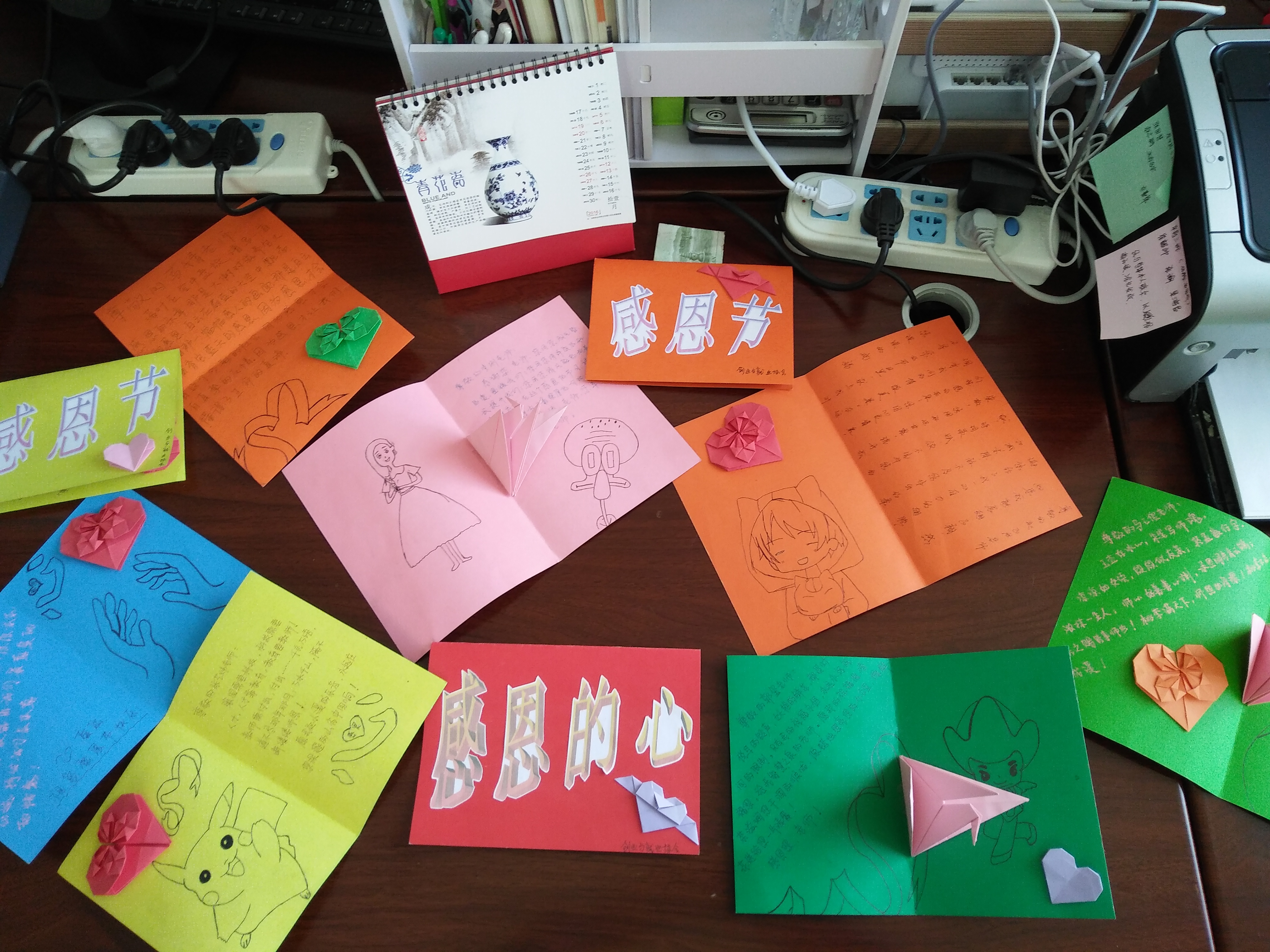 活动期间,协会所有成员各展所长,用心制作出精致温馨的感恩节贺卡,并于当天下午送给各位代课老师。协会成员在送贺卡的同时,表达了自己对老师深切的祝福,看着老师们脸上甜美的笑容,协会成员的脸上也洋溢着幸福的笑容。