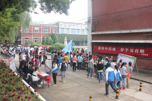 2013年9月16日,我院西教学楼前热闹非凡,中药协会、交谊舞协会、武术协会、青年志愿者协会、礼仪协会、英语协会、数学建模协会等社团同时展开新学期纳新活动。不少大一新生来到活动现场,寻找自己感兴趣的学生社团,使得纳新现场呈现出一片繁荣热闹的场面。