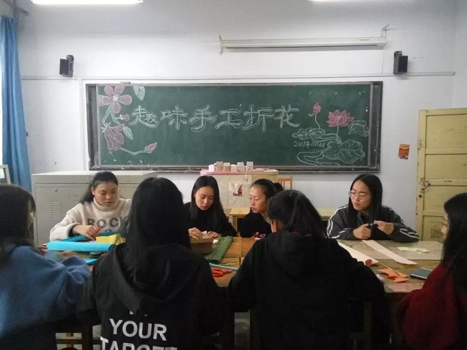 为了培养大学生的创新思维,增强环保节约意识,做到物尽其用、合理共享,手工艺协会于11月4日组织开展“趣味手工折花”制作活动。