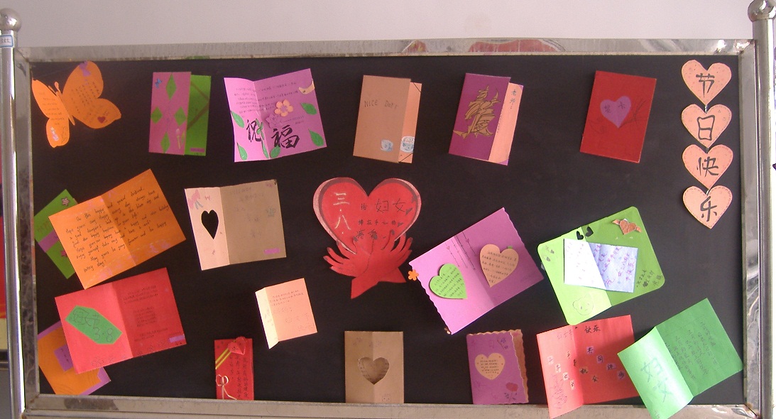 当日清晨,校园里挂起了鲜艳的条幅“祝全院女教师节日快乐!”同学们做了精美的贺卡,五颜六色的贺卡在春风的吹拂下轻轻飘动。一句句“老师,您辛苦了,祝您节日快乐!” 、“祝您身体健康,永葆青春”,简短朴素的言语传递着同学们对老师的祝福与感谢。同学们把自己叠的一颗颗红心赠予老师并在校园的宣传板上画上了祝福的板报,以表对老师的祝福。“平凡、普通”,我们可以用这样的字眼来形容我们的女教师,但在茫茫人海她们却闪耀着光芒,因为她们把自己的青春献给了教育事业。