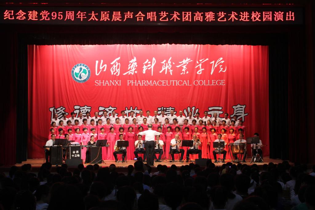 “走近大师、感受经典”,太原晨声合唱艺术团专场演出是我院为庆祝建党95周年,红军长征胜利80周年,大力弘扬爱国主义精神,讴歌中华民族实现伟大复兴中国梦的奋斗历程,追寻革命先辈的光辉足迹,尽情抒发全院师生对中国共产党炽热的赤子情怀。表演者者们用热情激昂的歌声表达了对党、对伟大祖国的热爱之情,唱响了时代主旋律。