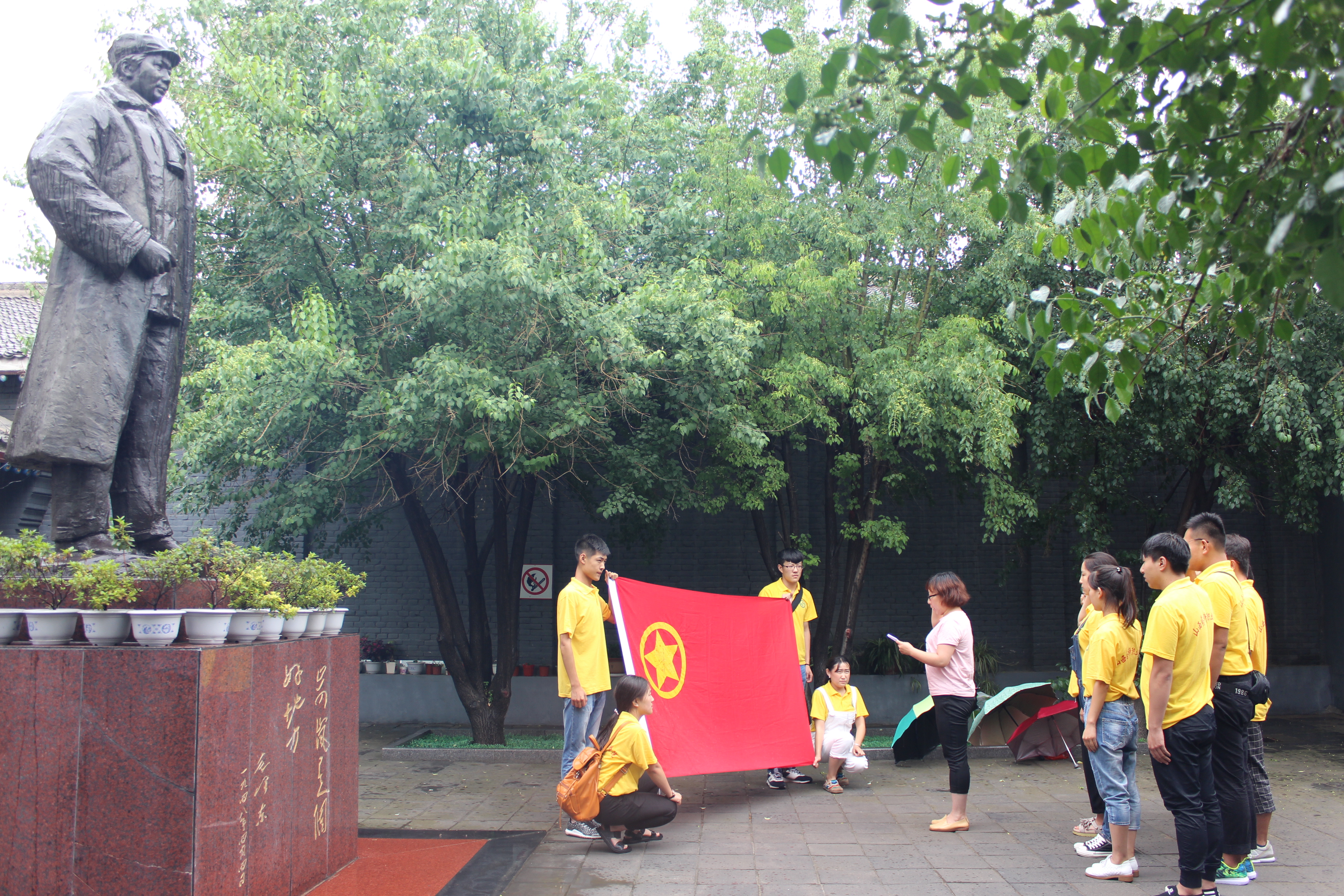 在重温和缅怀解放战争的历史后,每一个人内心都波澜起伏,随后,全体队员在毛主席塑像前,面对鲜艳的团旗,在高红伟主任的带领下,大家坚定宣誓:我志愿加入中国共产主义青年团……我们更加坚定信念,要紧跟党走,永远铭记毛主席和老一辈无产阶级革命家的丰功伟绩,心怀“中国梦”,不忘初心,继续奋勇前进,在实践中锻炼自己,磨砺意志,做社会主义事业的合格建设者和可靠接班人。