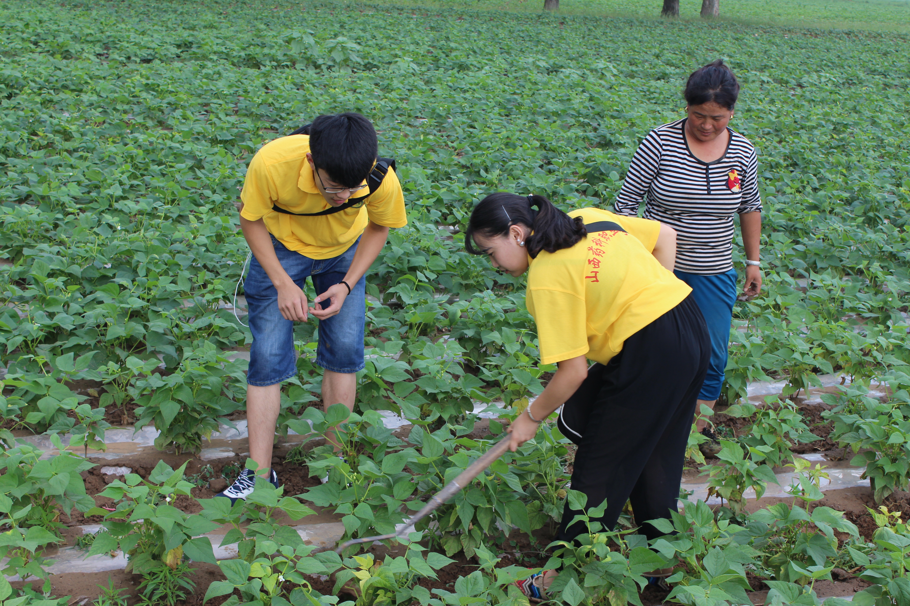 随后,队员们不畏天气的炎热,更不畏农地雨后泥泞的土地,纷纷到农地里帮助农民伯伯锄地拔草。一上午的辛勤劳动,大家收获颇丰,用带泥渍的手掌擦掉额头的汗水,闻到的是泥土的芳香。同学们看着面朝黄土背朝天默默耕耘的农民,看着汗水浇灌的一株株豆苗,认识到农业生产的艰辛和不易,也深刻地认识到作为大学生的我们要更加深入地走进基层,了解社会,艰苦奋斗,自力更生,创造更加美好的未来。