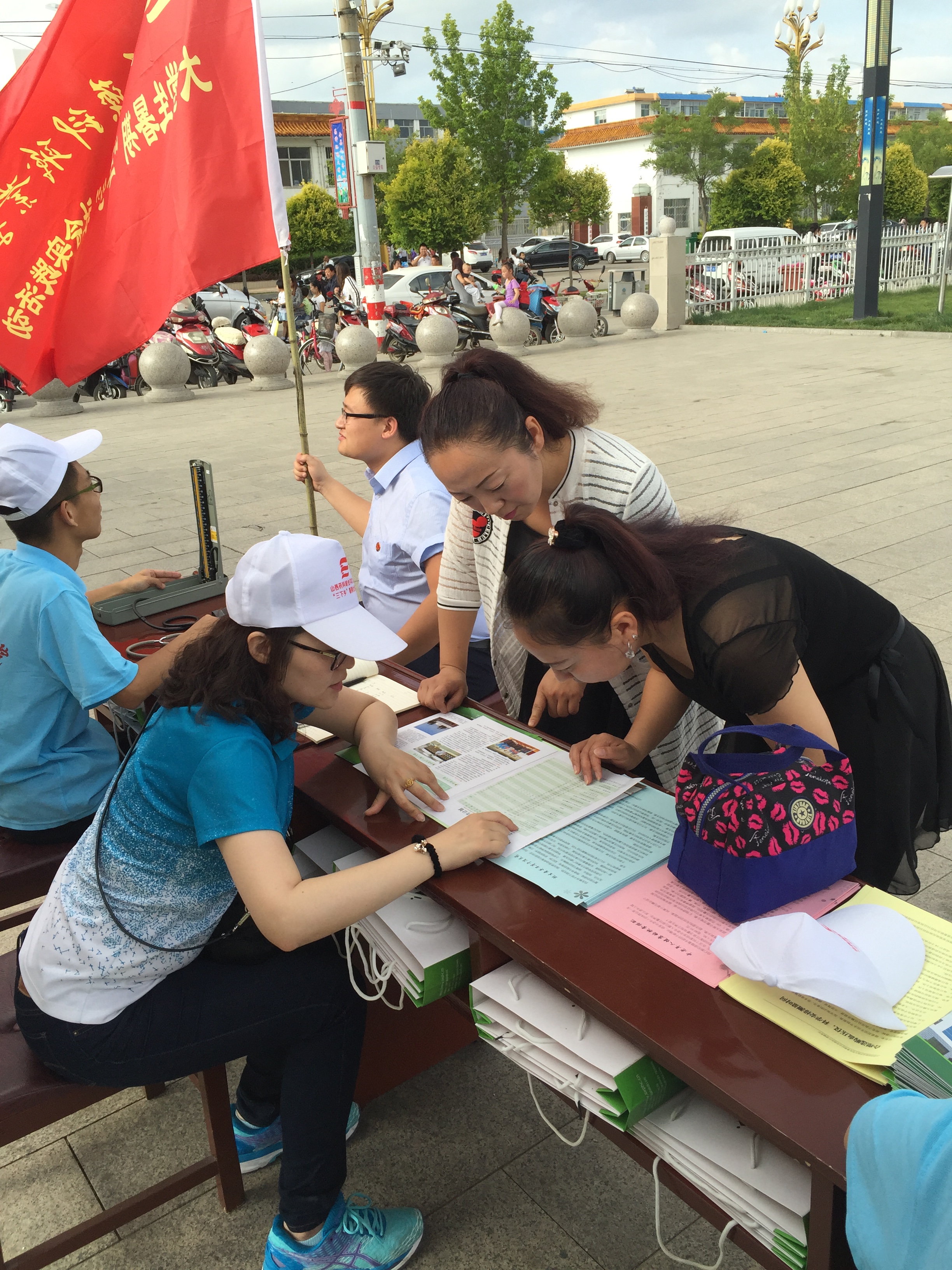 下午4点,实践队员们步行来到了神池县人民广场展开了主题为“走出学院,走向社会,普及知识,扬我药院”的用药知识宣传活动,同时义务为神池县居民测量血压。并且向群众发放了关于安全用药、食品安全等宣传资料,进行了一些家庭用药和药品存储方面知识的讲解。同时也对当地群众进行了食品安全知识的讲解。此次宣讲活动吸引了神池县广大群众的参与,受到了当地民众的热烈欢迎,对提高当地居民用药知识和食品安全知识起到了积极作用。