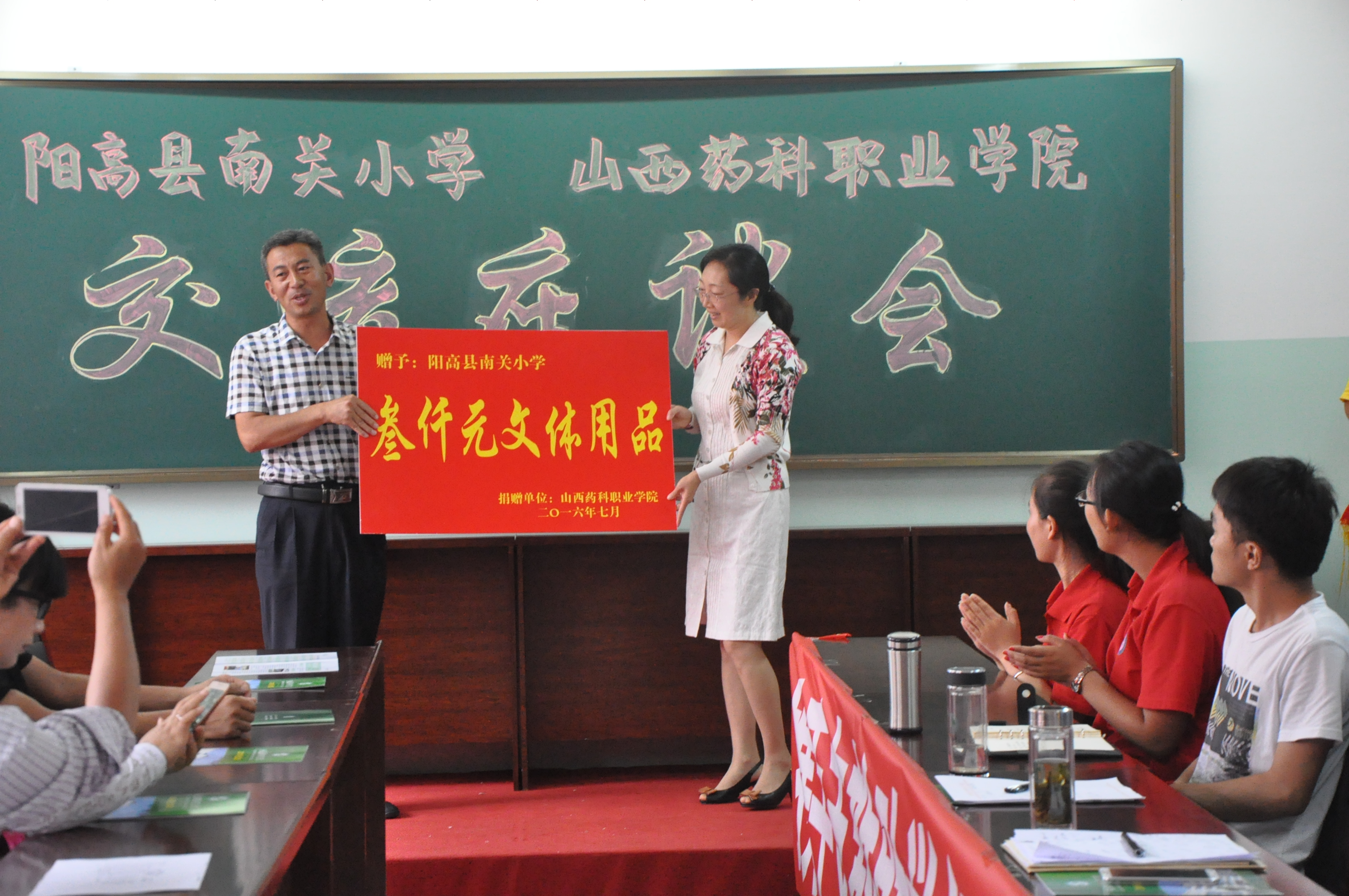 接着,我院向南关小学捐赠了价值三千元的文体用品。
