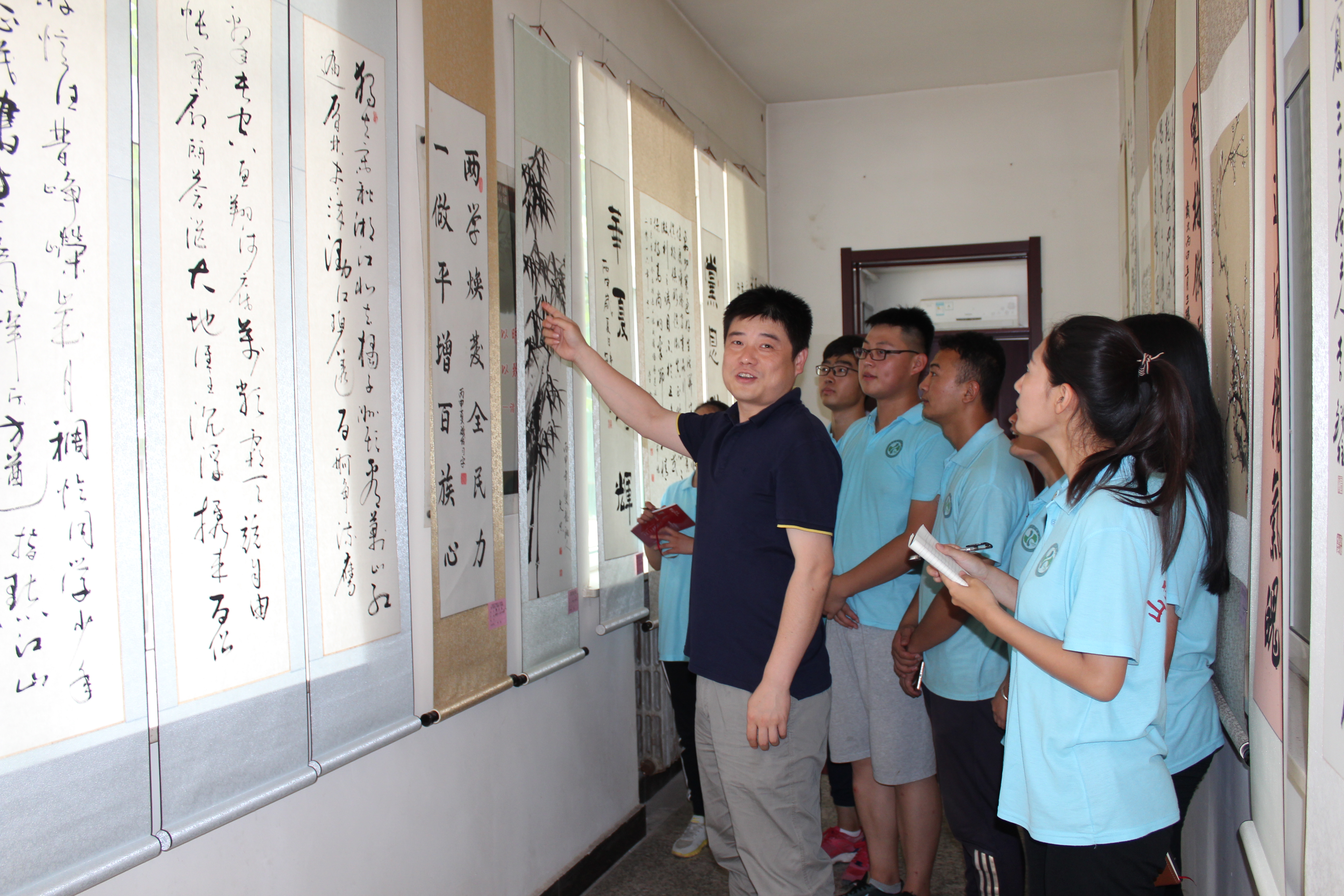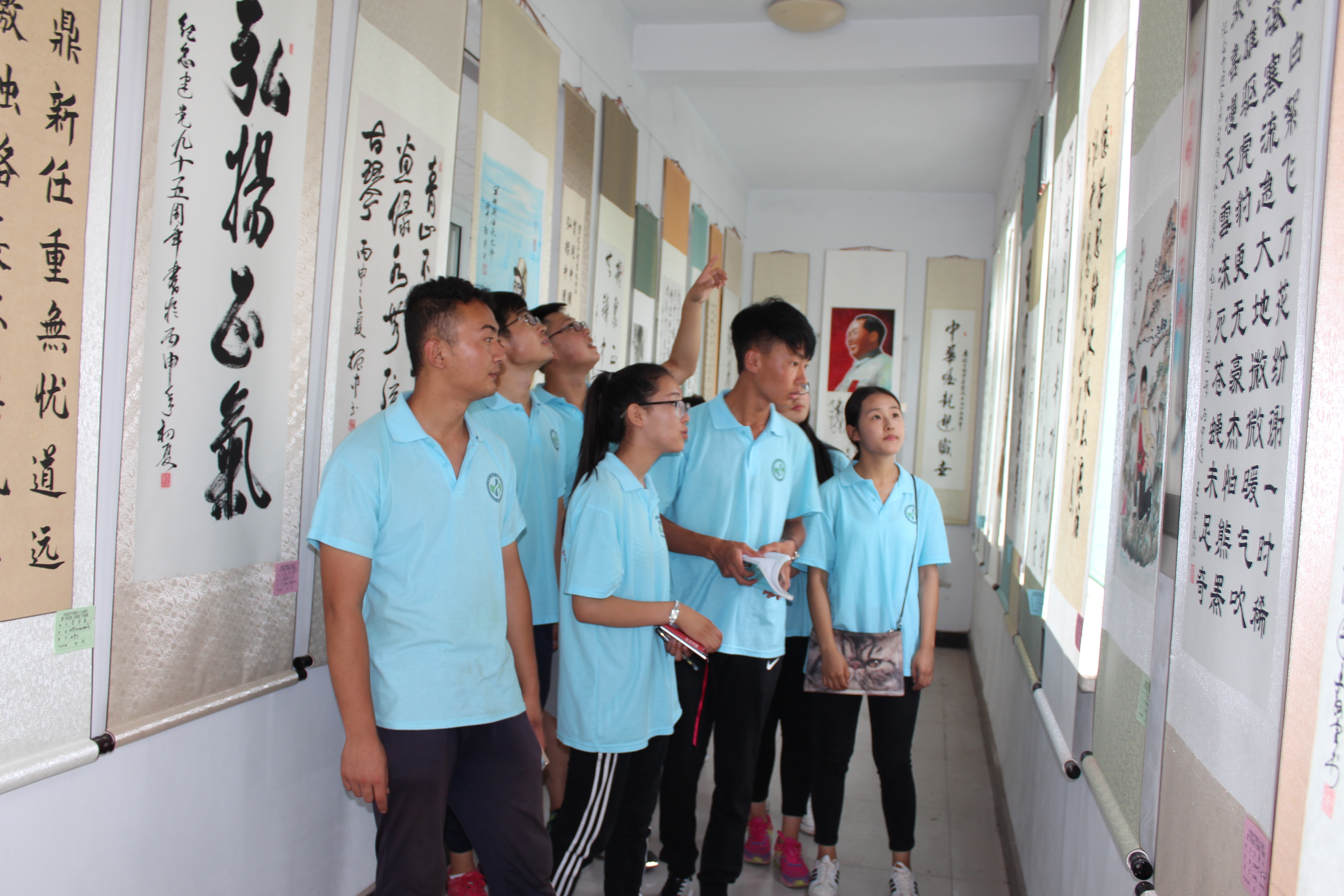 本次展出百十余幅书画作品,既有习近平总书记系列重要讲话中引述的古典名句,又有“两学一做”教育重点要求,还有充满象征意味的山水花鸟,内容丰富,寓意鲜明,匠心独运,挥毫泼墨、妙绘丹青,抒发了对党忠诚、勇于担当的思想情怀。实践队员们驻足在一幅幅主题鲜明的书画作品前,详细解读作品所隐含的深意,既受到了艺术的熏陶,又接受了一次深刻的文化洗礼,补足了“精神之钙”。