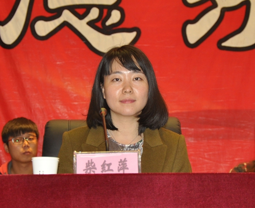 图为院团委副书记柴红萍同志宣读暑期社会实践活动单位贺信