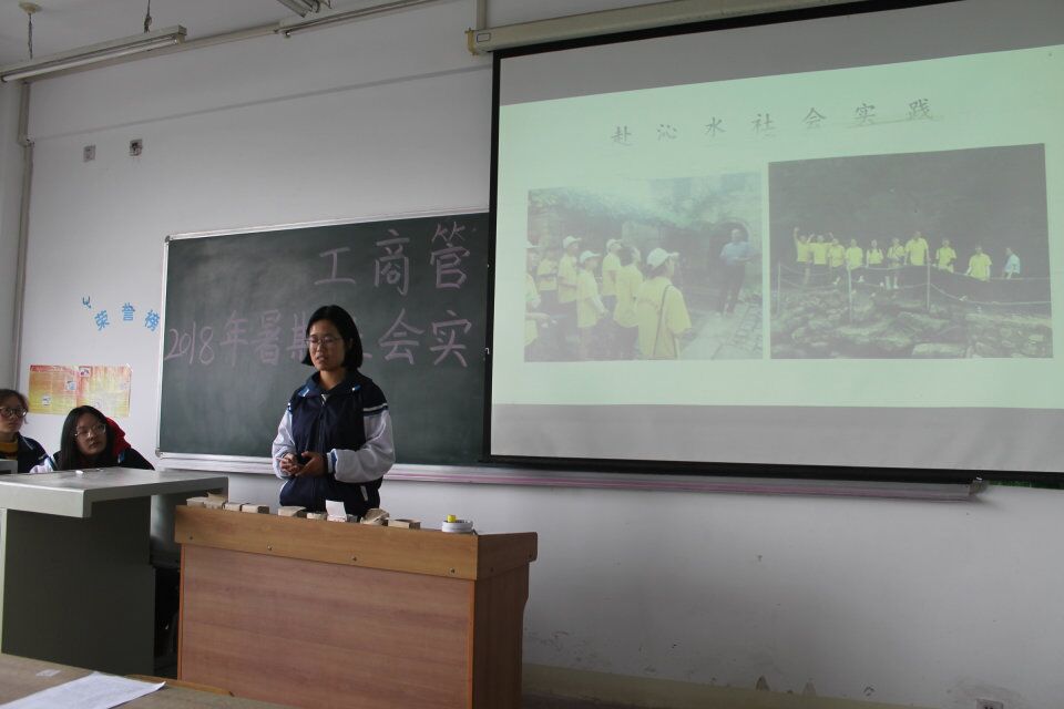 为深入贯彻十九大精神,践行“青年服务国家”理念,总结展示暑期社会实践成果,10月15日下午,工商管理系在东教学楼416教室召开了2018年暑期社会实践总结交流会。10名参加2018年暑期社会实践的优秀队员代表与2018级新生分享他们的社会实践经历。