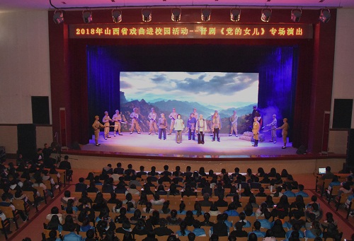 为弘扬中华优秀戏曲文化,提升青年学生的传统文化素养,引导教育青年学生自觉践行社会主义核心价值观,2018年11月26日下午,山西省戏曲进校园活动——晋剧《党的女儿》专场演出在我院礼堂精彩上演。