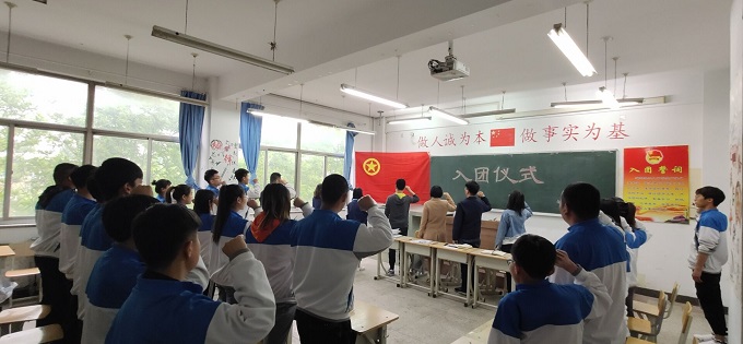 在雄壮的国歌歌声中,入团仪式拉开帷幕。主持人首先介绍此次入团仪式的所有流程,并宣读了本次18位新团员名单。分团委副书记及辅导员老师依次为新团员颁发了团徽、颁发团员证,由学生分团委副书记张耀元庄严宣誓。接着,入团介绍人代表陈紫阳宣读了团团员的权利和义务,最后,新老团员代表分别结合自身工作经历和感悟做了表态发言,表示要继承发扬共青团的优良传统,以优秀团员的标准严格要求自己,热爱团组织,坚定理想信念,做新时代的合格建设者和可靠接班人。