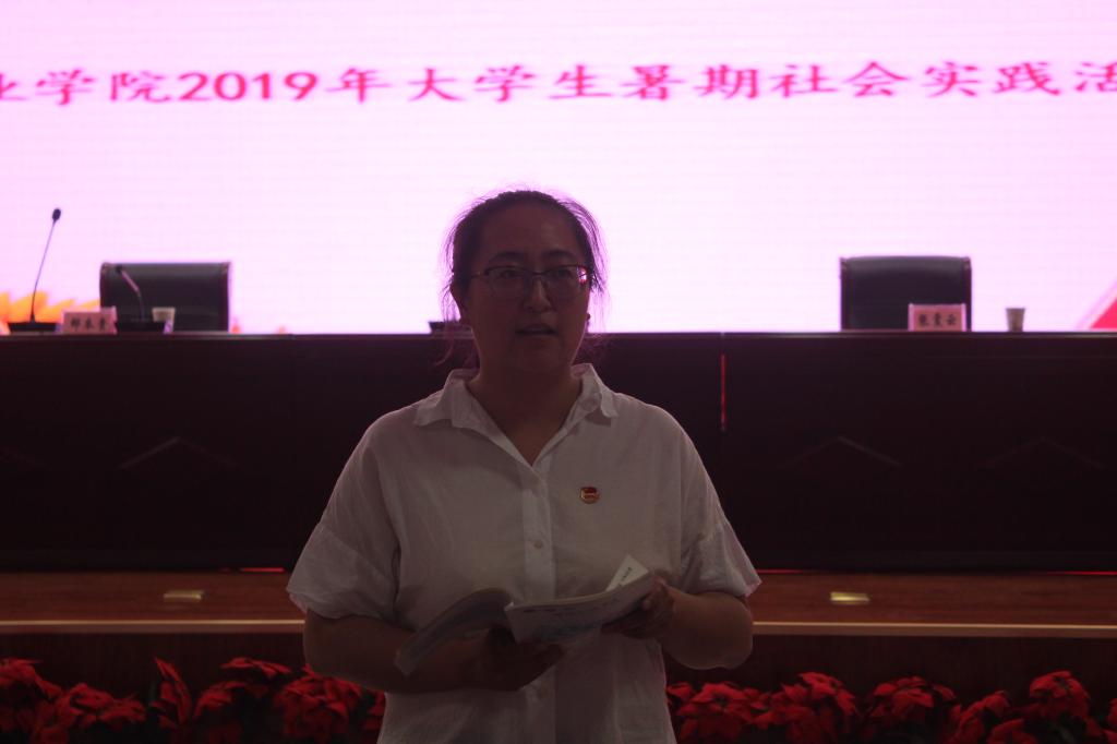 6月27日上午,我院2019年暑期社会实践活动培训活动在综合楼报告厅举行。全体集中社会实践队员参加了此次培训会,会议由院团委副书记(挂职)方育婧同志主持。