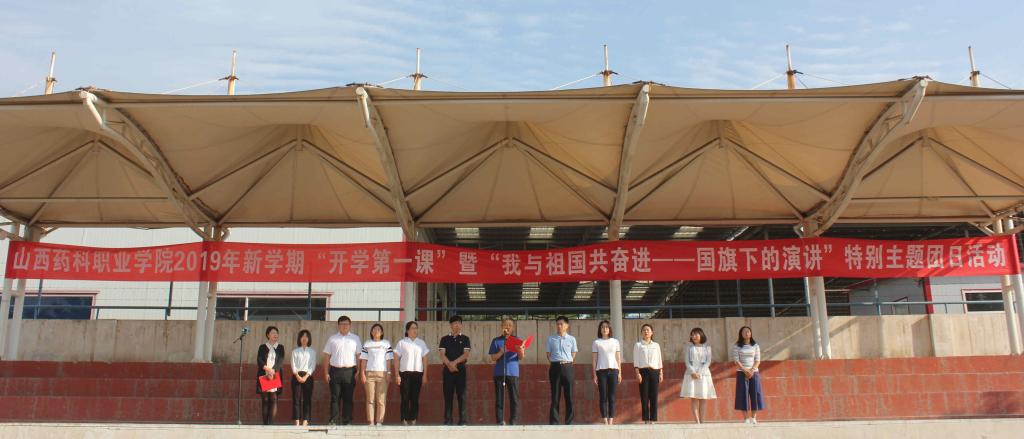 为庆祝中华人民共和国成立70周年,大力唱响礼赞新中国、奋进新时代的青春主旋律。9月9日上午,我院举行了2019年新学期“开学第一课”暨“我与祖国共奋进——国旗下的演讲”特别主题团日活动。院党委副书记邹本贵出席活动,学院相关职能部门负责人、教学系党总支书记、全体共青团干部、部分辅导员及2018级全体学生2000余人参加本次活动。