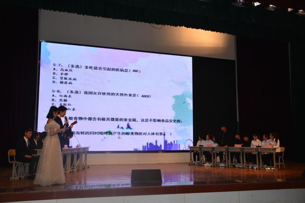 活动伊始,由主持人介绍参加本次活动的嘉宾以及活动规则。此次活动分为知识竞答和舌尖上的安全两个部分。知识竞答部分,参赛选手们凭借扎实的食品安全知识沉着应答,稳扎稳打,随着活动的进行,选手们渐入佳境,互不相让,均表现出为团队争光的积极奋战状态。各参赛队斗智斗勇,竞相展现丰富的知识储备,向师生们呈现了一场精彩绝伦的食品安全知识比拼。舌尖上的安全环节,首先由我院学生投票选取自己关注的食品安全话题,再由各参赛队抽签选取,并针对选取话题制作视频为同学们进行讲解和展示。各参赛队的视频思路清晰、语言表达流畅、素材真实合理、饱含无限创意,通过轻松愉快的方式为同学们普及了食品安全知识。