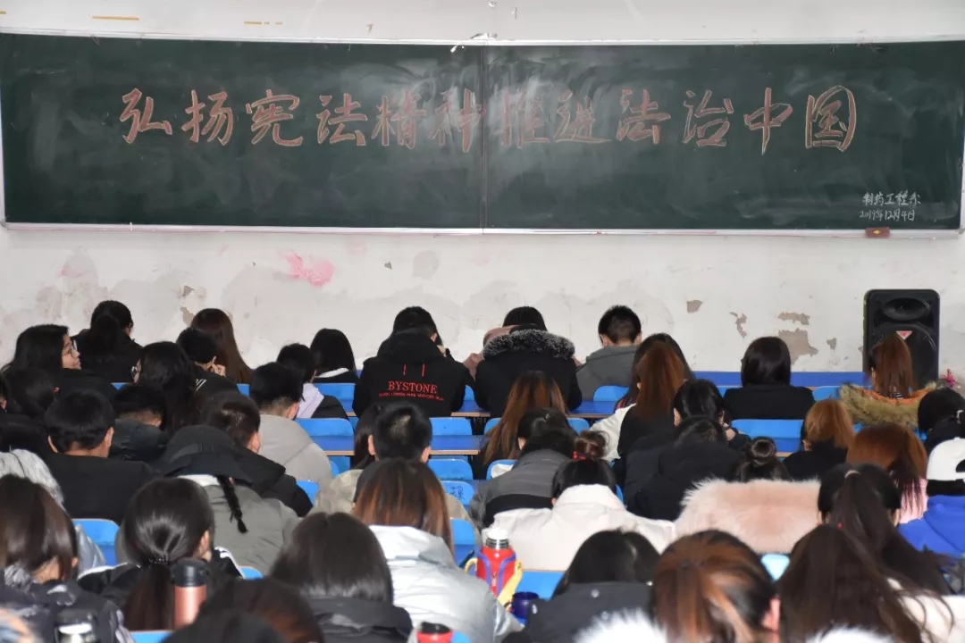 为认真学习贯彻党的十九届四中全会精神,提高法治意识,保证宪法全面实施。近日,制药工程系分团委邀请思政部张少明副主任为学生上了一堂“弘扬宪法精神,推进法治中国”专题讲座。