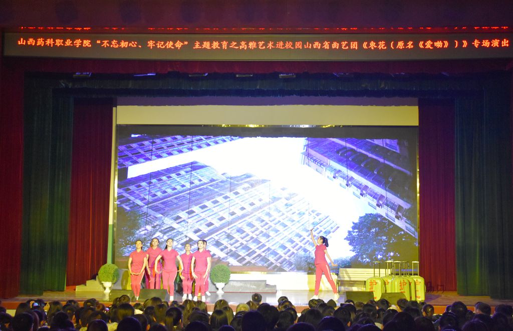 为弘扬优秀传统文化,传承戏曲艺术,丰富校园文化生活,提高学生艺术修养,在深入开展“不忘初心、牢记使命”主题教育之际,12月11日下午,山西省曲艺团创作的轻喜剧《枣花》在我院大礼堂倾情上演。院党委副书记邹本贵同志及千余名师生到场观看演出。