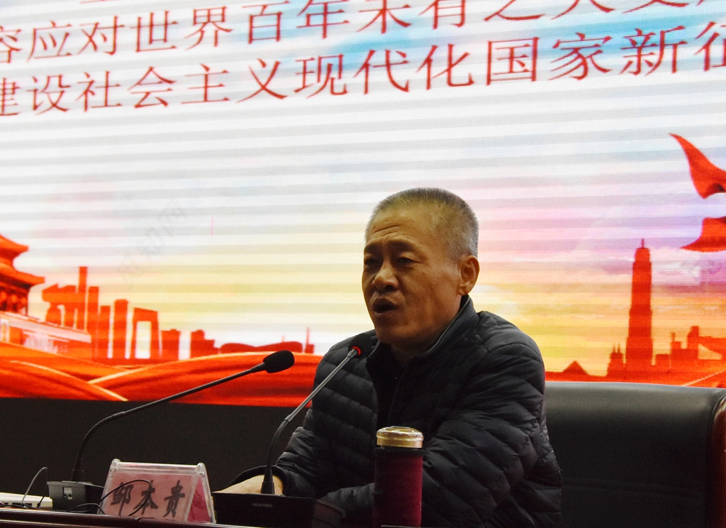 邹本贵以《坚定“四个自信”,从容应对百年未有之大变局,开启建设社会主义现代化国家新征程》为题,围绕习近平总书记在党的十九届五中全会上的重要讲话精神、当前国际国内形势及如何做一名坚定的青年马克思主义者等,向同学们宣讲了党的十九届五中全会精神。
