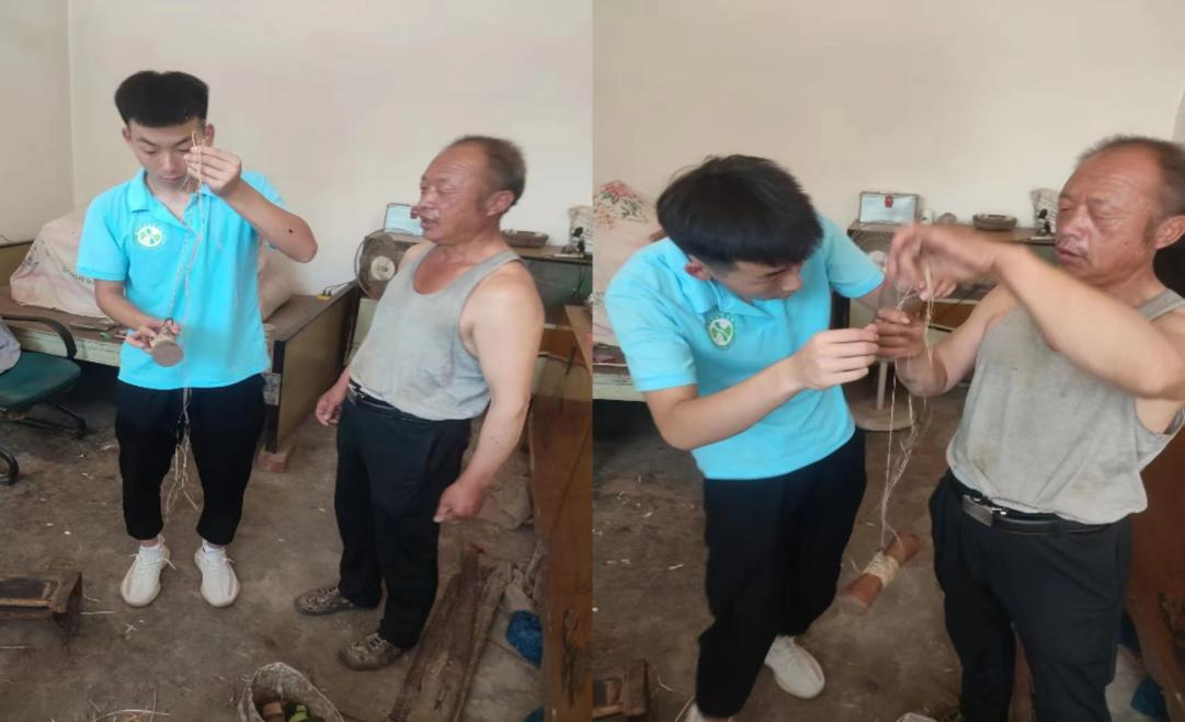 在杨春平老师的讲解示范下,同学们一边认真听讲一边进行操作,亲自动手体验了一下刮皮和编麻线两道工序,大家忙活了近两个小时,看到自己制作的刮皮和麻绳被老师肯定时,脸上洋溢着成功的喜悦。