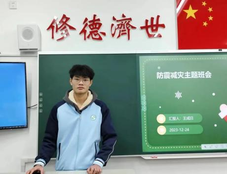 2023年12月18日,甘肃临夏州积石山县发生6.2级地震。为进一步加强学生防震减灾意识,普及地震逃生的知识与技能,提高应急反应和自救能力,药学系分团委于2023年12月24日在各班教室开展了以“防灾减灾”为主题的班会活动。